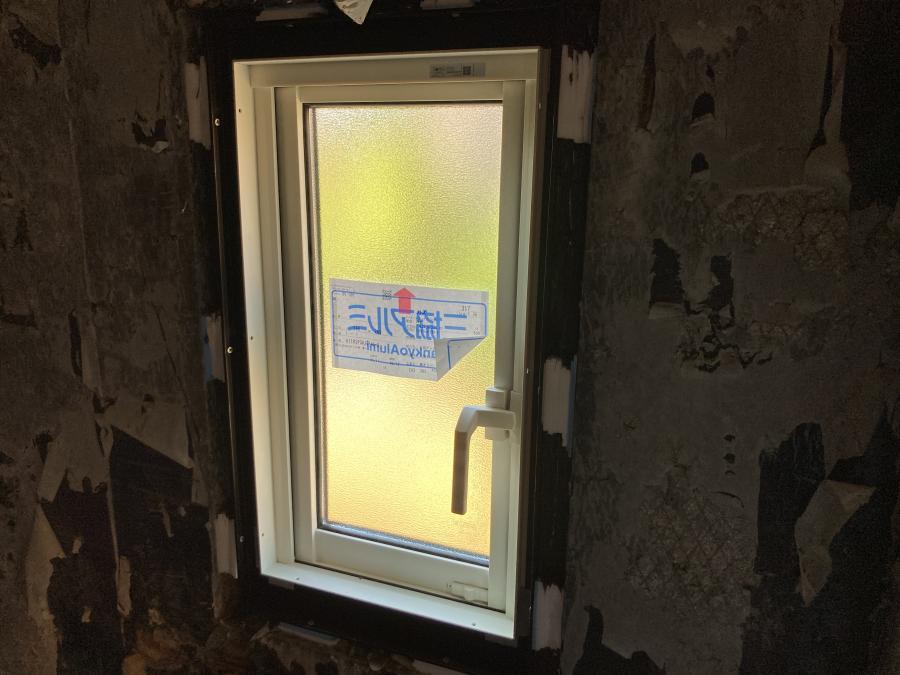 新しくユニットバスを設置する予定のため、サッシまわりの内部側はまだ仕上がっていない状態でした。